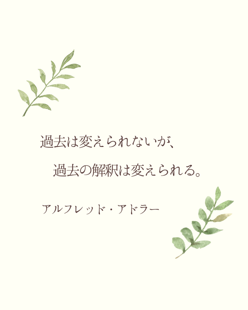 つまり、出来事そのものは変えられなくても、それを“どう意味づけるか”は、今の自分に委ねられているということです。