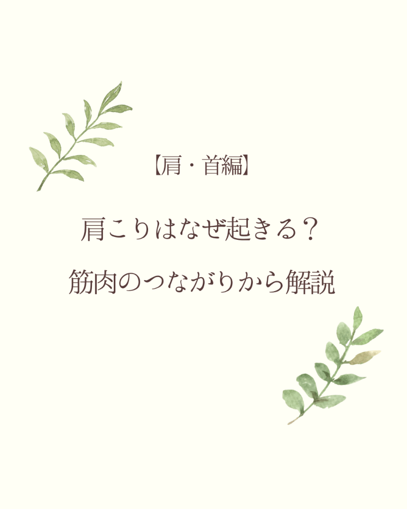 肩こりは、全身の筋肉のつながりとバランスが深く関わっています。